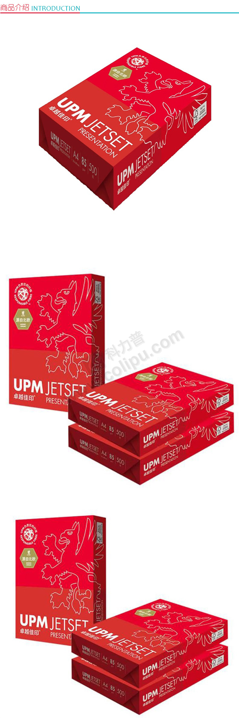 卓越佳印 UPM Jetset Presentation 复印纸 A4 85g 500张/包 5包/箱 整箱订购