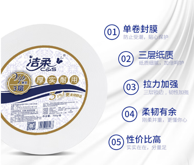 洁柔(C&S)商用加厚3层180米大盘纸12卷/箱 JX024-12A 酒店民宿卫生间大卷纸