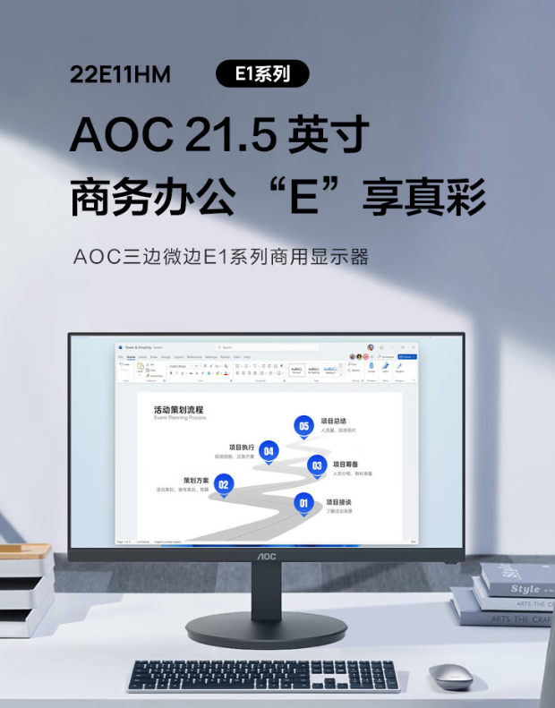 AOC电脑显示器 21.5英寸全高清 VA广视角 HDMI+VGA 快拆支架 TUV低蓝光不闪屏 商用显示屏 22E11HM