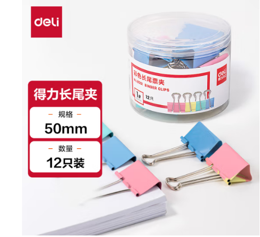 得力 (deli) 8553 32mm 彩色长尾票夹 24只装