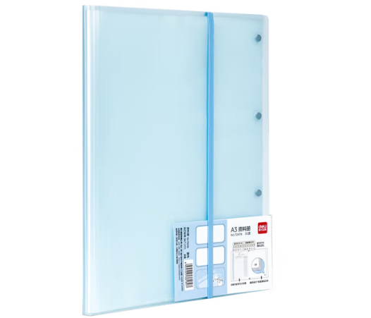 得力(deli)A3资料册试卷收集册 可装A3尺寸对折款 学生试卷收纳册活页插袋孕检 72478 30页 蓝色