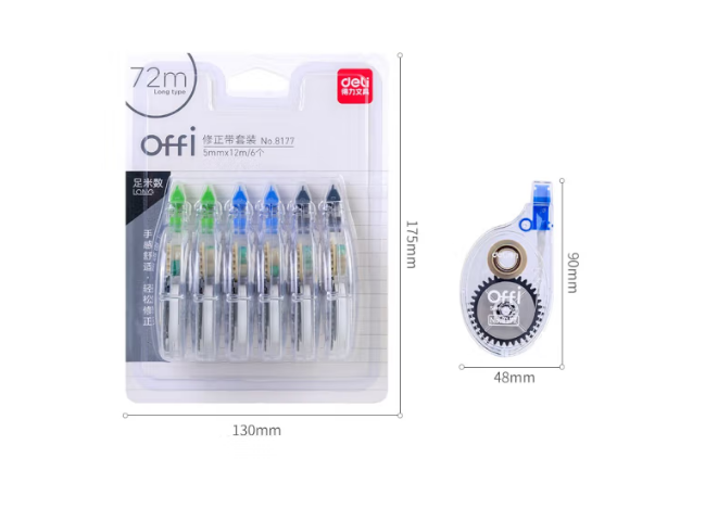 得力(deli)8177修正带学生12m修正带涂改带改正带6个卡装混色1卡装