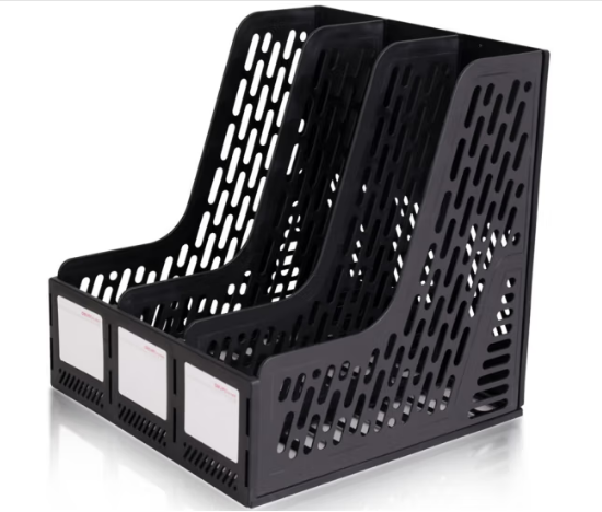 得力(deli)文件框三联文件架收纳文件栏文件筐办公用品创意桌面文件框资料架 黑色 9845