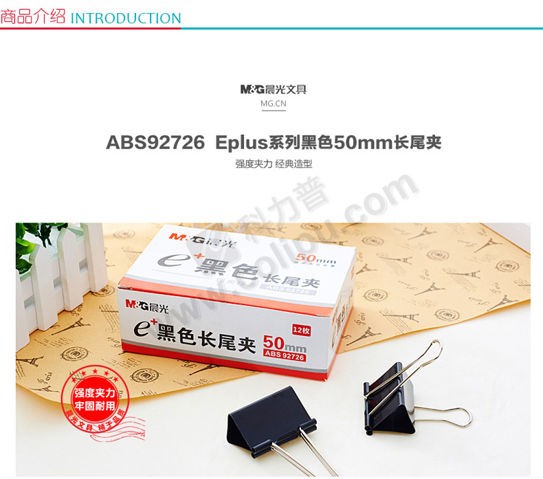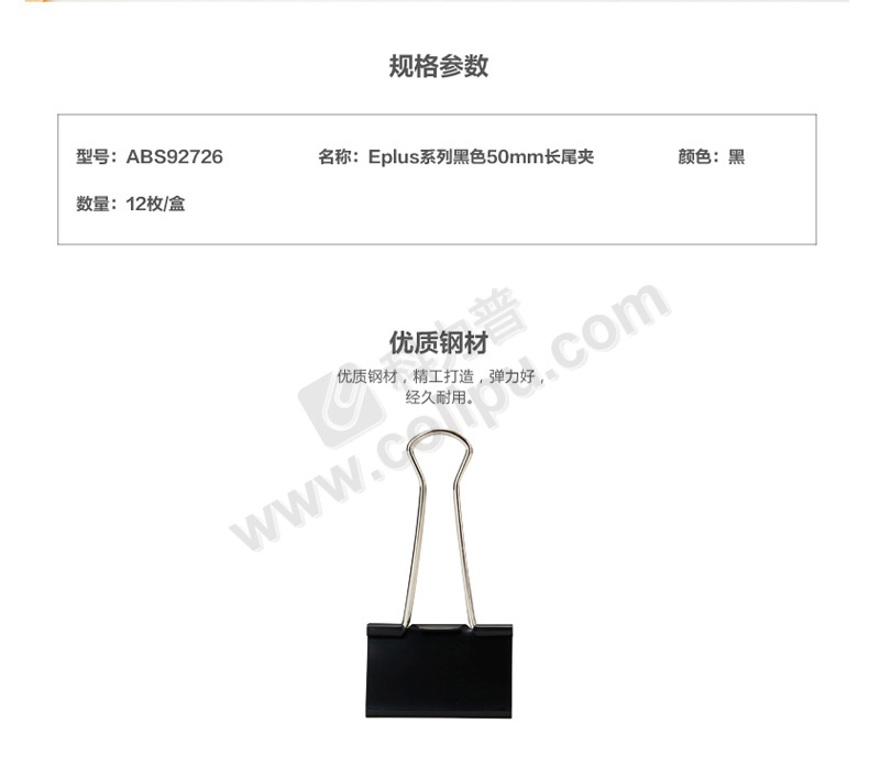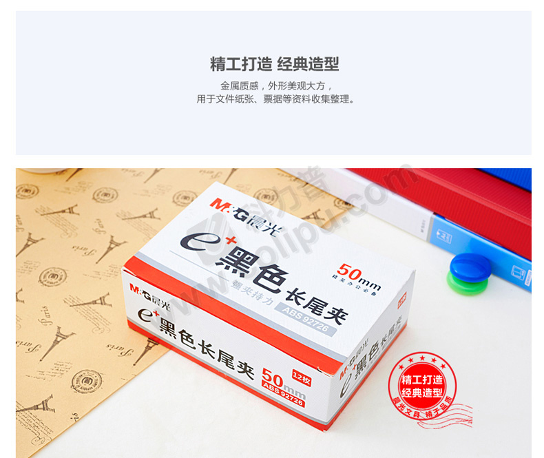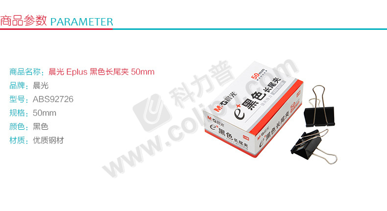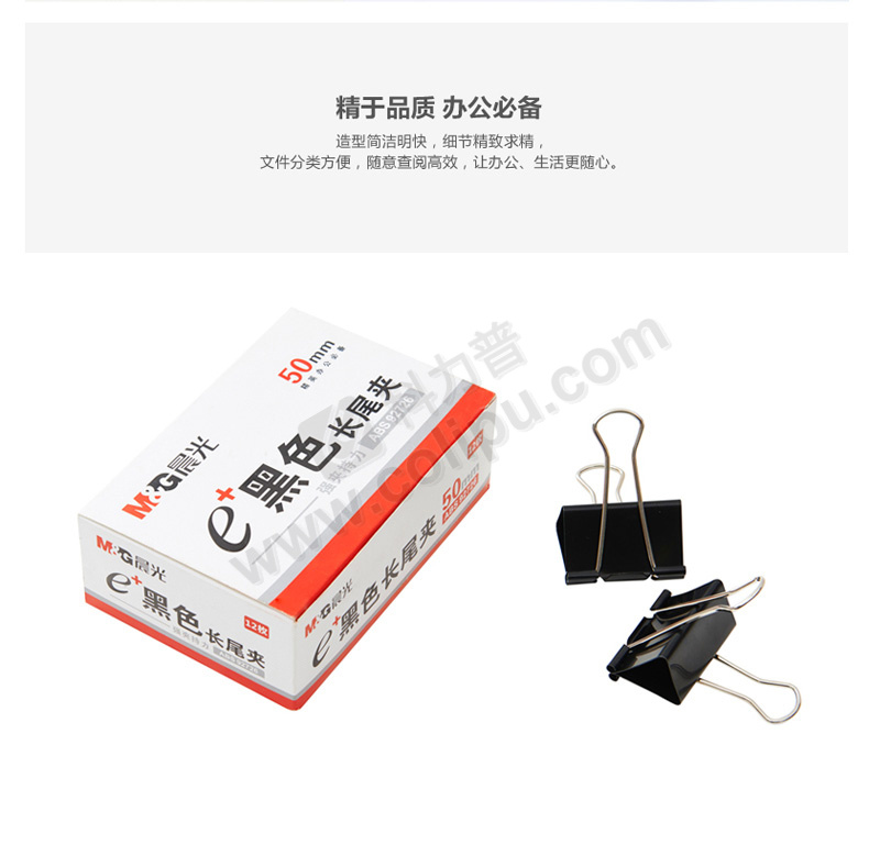 晨光 M&G Eplus盒装黑色长尾夹 ABS92726 50mm 12个/盒
