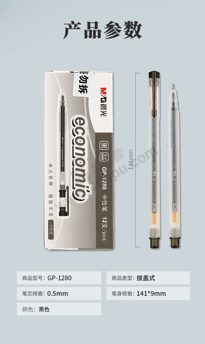 晨光 M&G 拔帽中性笔 GP-1280 0.5mm (黑色) 12支/盒 (替芯 MG6139)