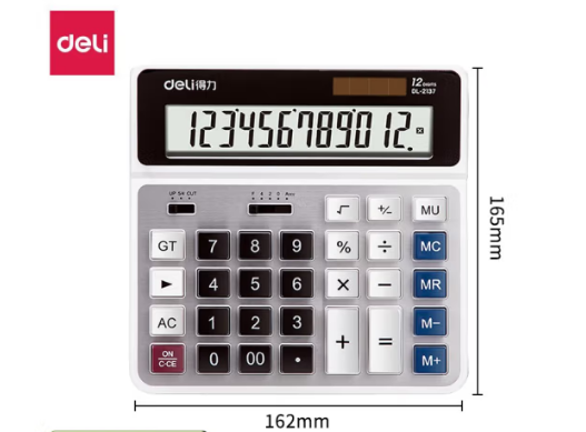 得力(deli)1676双电源桌面计算器 12位数宽大显示屏财务计算器 办公用品 耐磨塑胶按键 白色 1676