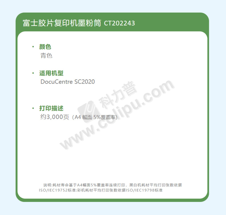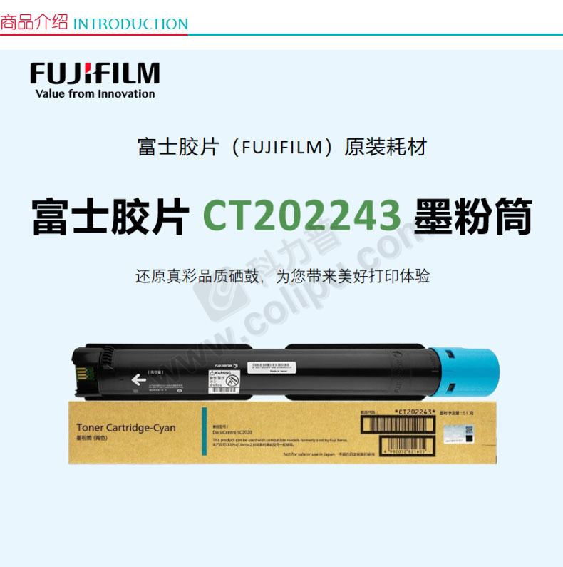 FUJIFILM 富士胶片 复印机墨粉筒 CT202243 3000页 (青色) 适用于SC2020
