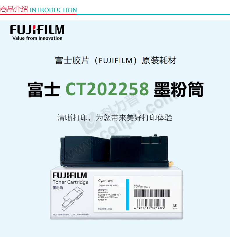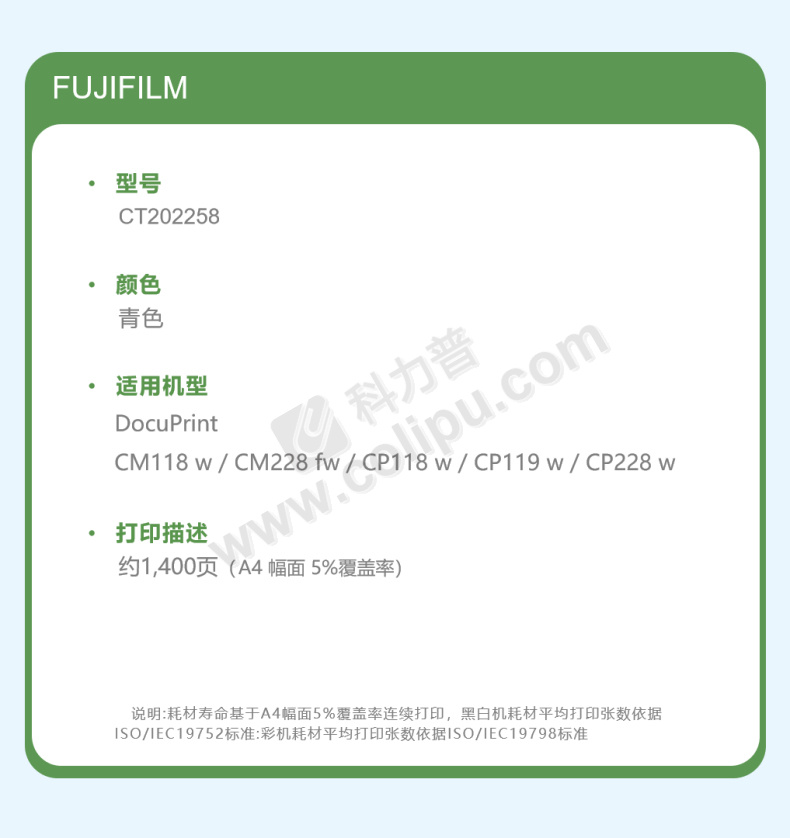 FUJIFILM 富士胶片 高容量墨粉筒 CT202258 1400页 (青色) 适用于CM118w/CM228fw/CP118w/CP119w/CP228w