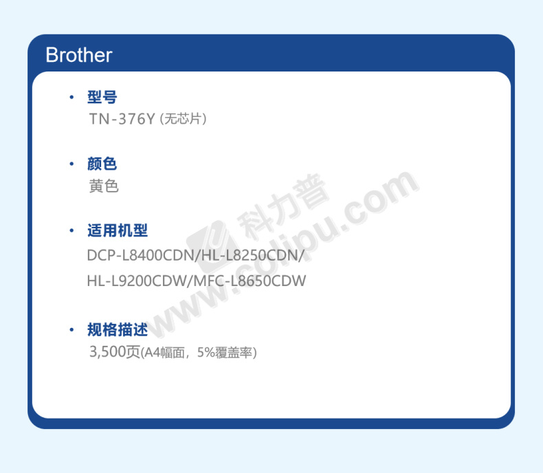 兄弟 brother 标准容量墨粉 TN-376Y 3500页 (黄色)