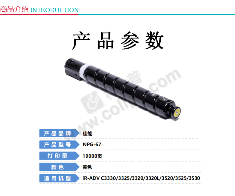 佳能/Canon 复印机粉盒 NPG-67 Toner Yellow 大容量 463克 适用于iR-ADV C3330/3325/3320/3320L 19000页 黄色