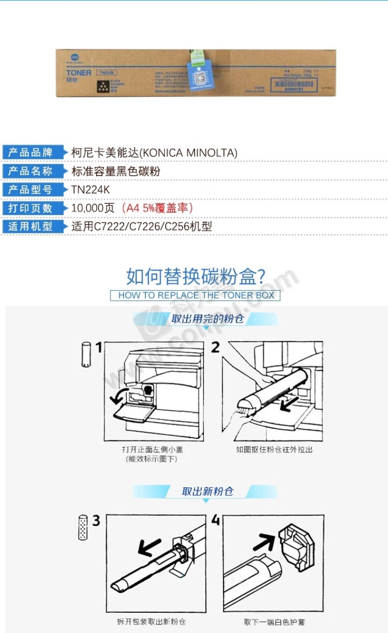 柯尼卡美能达 KONICA MINOLTA 标容墨粉 TN224K (黑色)