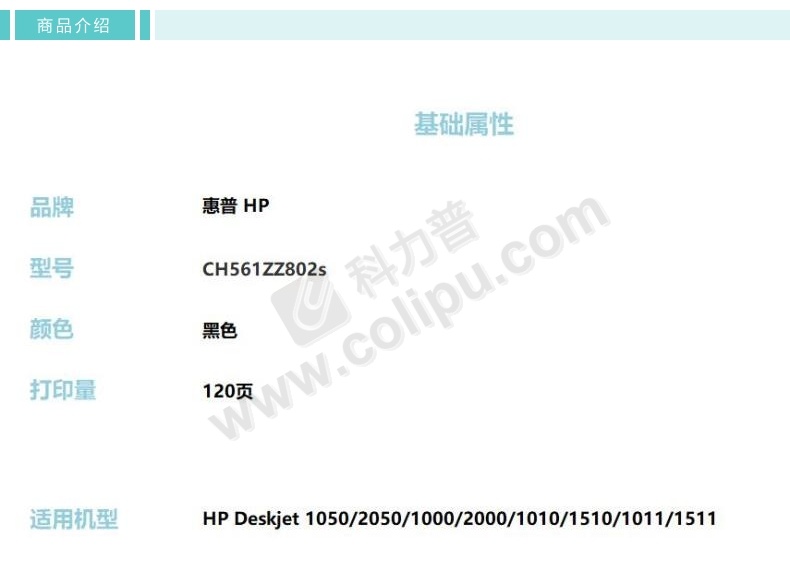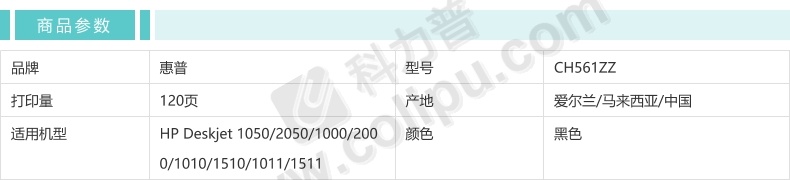 惠普 HP 小容量墨盒 CH561ZZ 802s 120页 (黑色)