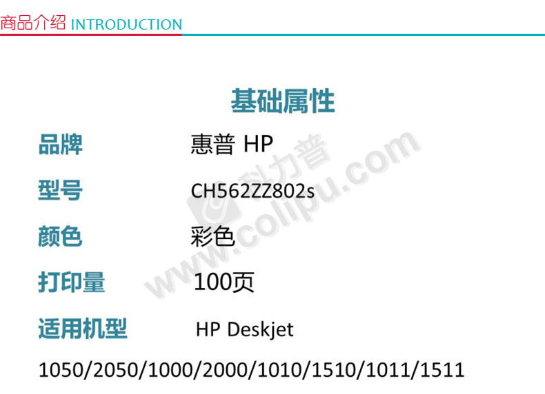 惠普 HP 小容量墨盒 CH562ZZ 802s 100页 (彩色)