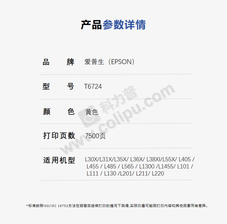 爱普生 EPSON 墨水 T6724 65ml 7500页 (黄色)