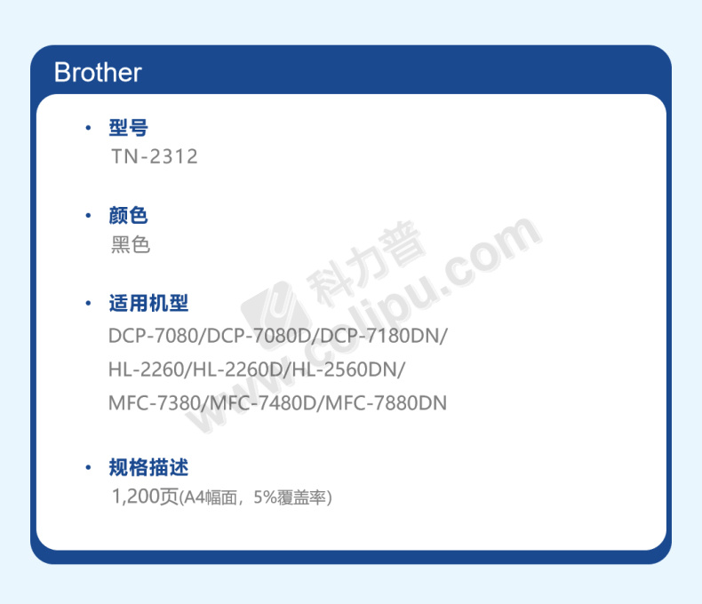 兄弟 brother 标准容量墨粉 TN-2312 1200页 (黑色)