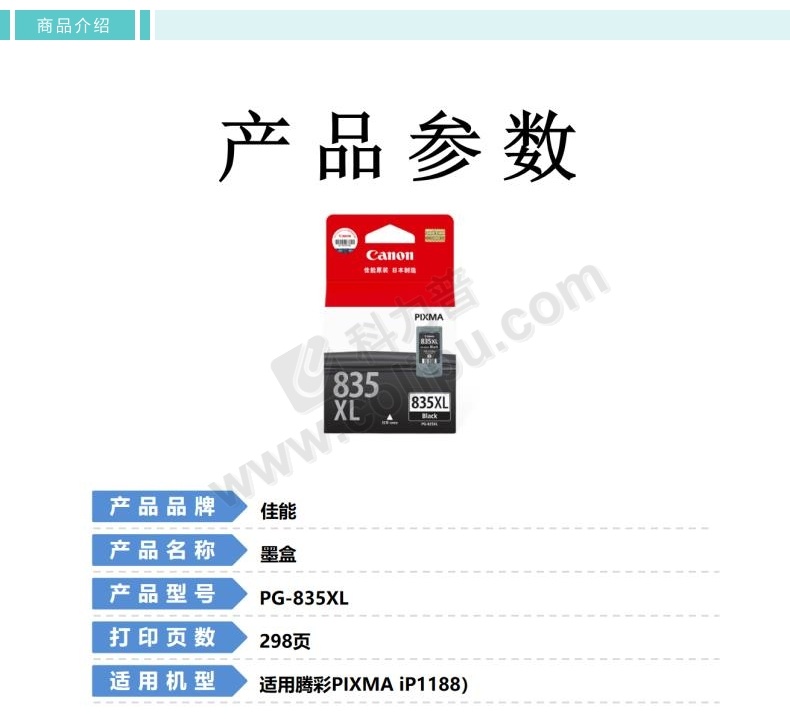 佳能 大容量墨盒 PG-835XL 打印量298页 (黑色)