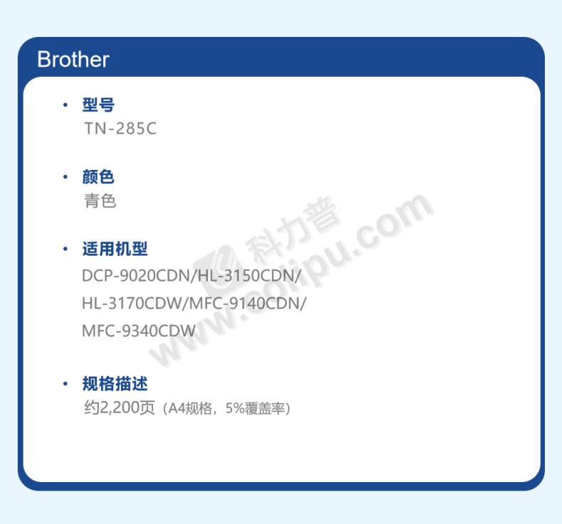 兄弟 brother 标准容量墨粉 TN-285C 2200页 (青色)
