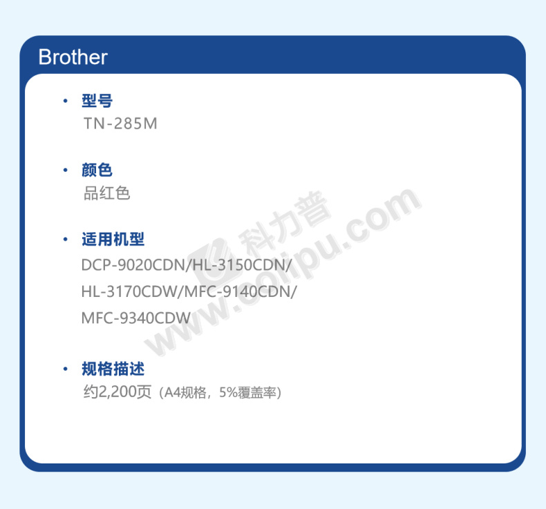 兄弟 brother 标准容量墨粉 TN-285M 2200页 (品红色)