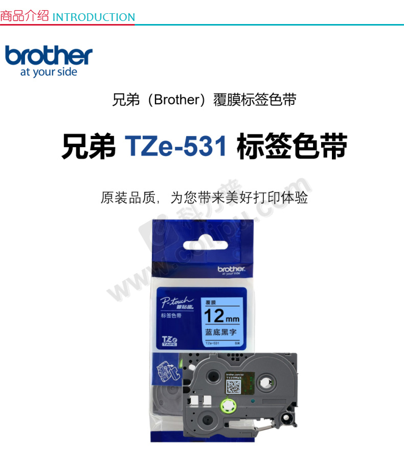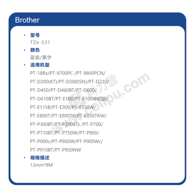 兄弟 brother 标签机色带 TZe-531 12mm*8M (蓝底/黑字)