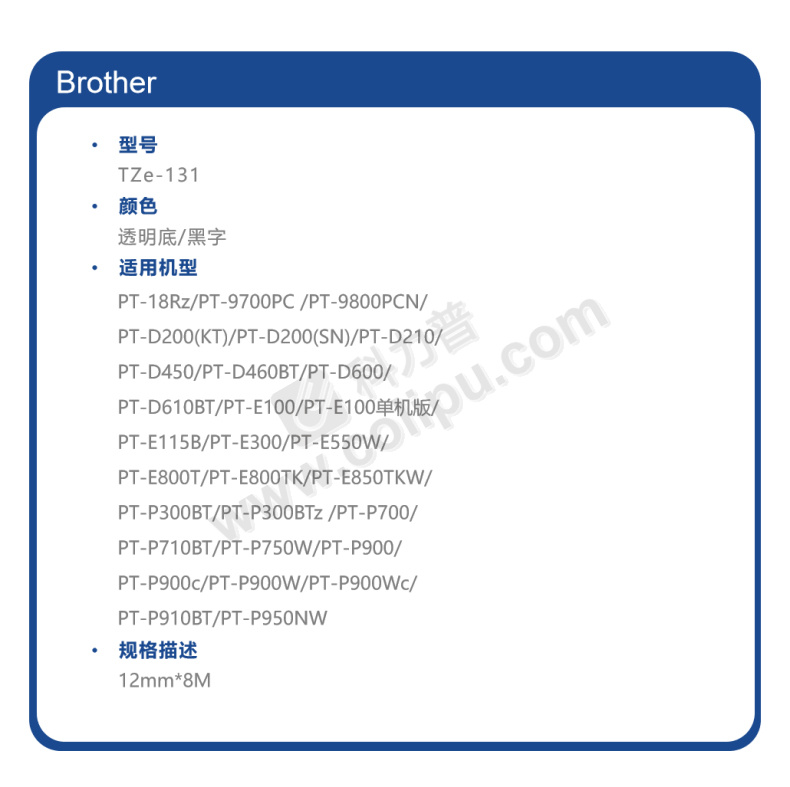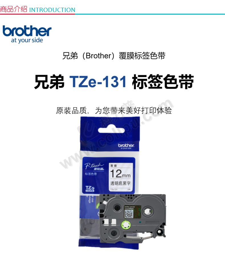 兄弟/BROTHER 标签色带 TZe-141 18mm*8m 透明底黑字 适用兄弟PT1650/7600/18RZ/2100