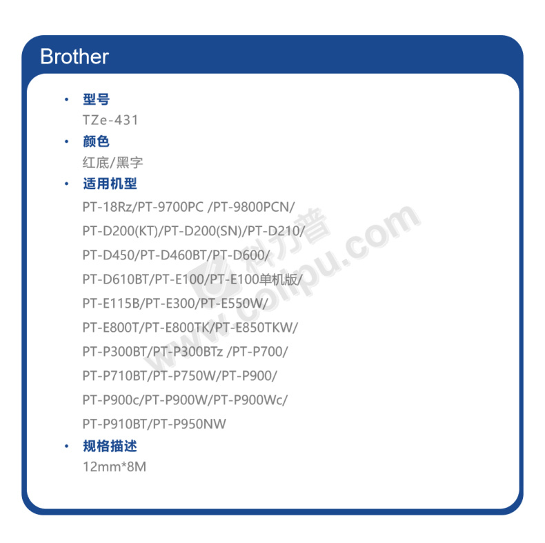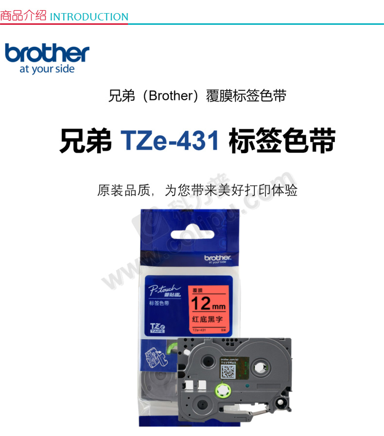 兄弟/BROTHER 标签色带 TZe-S231 12mm*8m 白底黑字 强粘性 重量50G