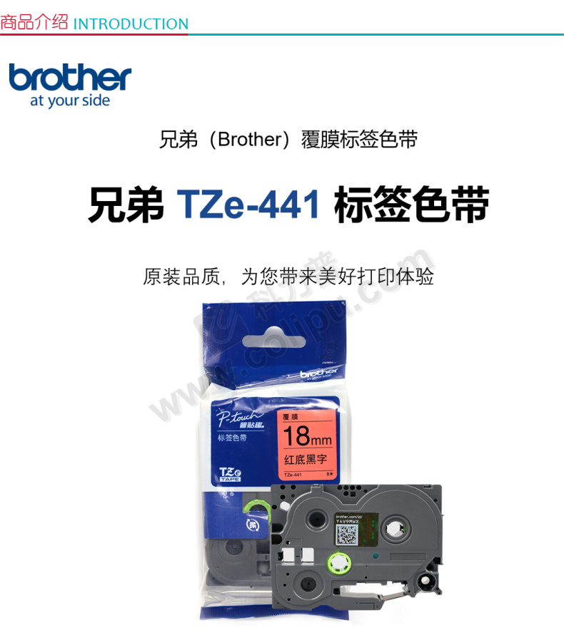 兄弟/BROTHER 标签色带 TZe-141 18mm*8m 透明底黑字 适用兄弟PT1650/7600/18RZ/2100