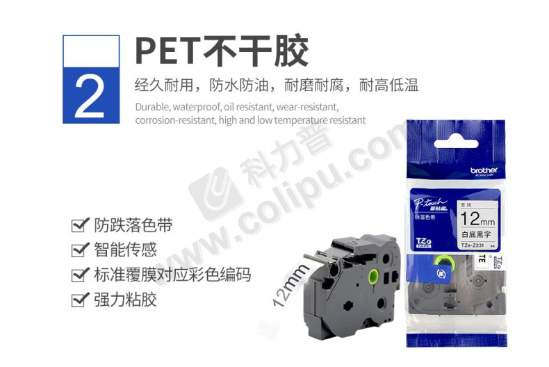 兄弟/BROTHER 标签机色带 TZe-231 12mm 白底黑字 适用机型:PT-D200(SN)/P300BT/P900W/P950NW/E550W/P700/P750W/P900