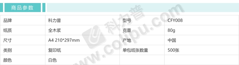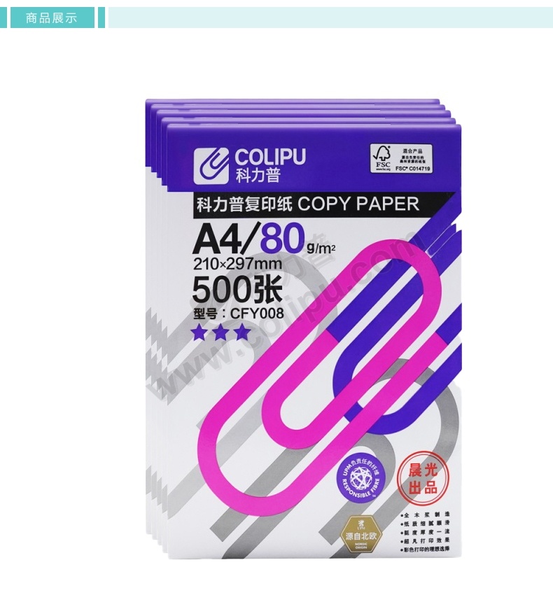 高品乐复印纸 70g A4高级复印纸8包/箱