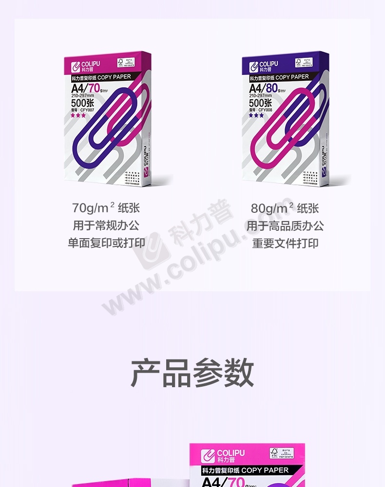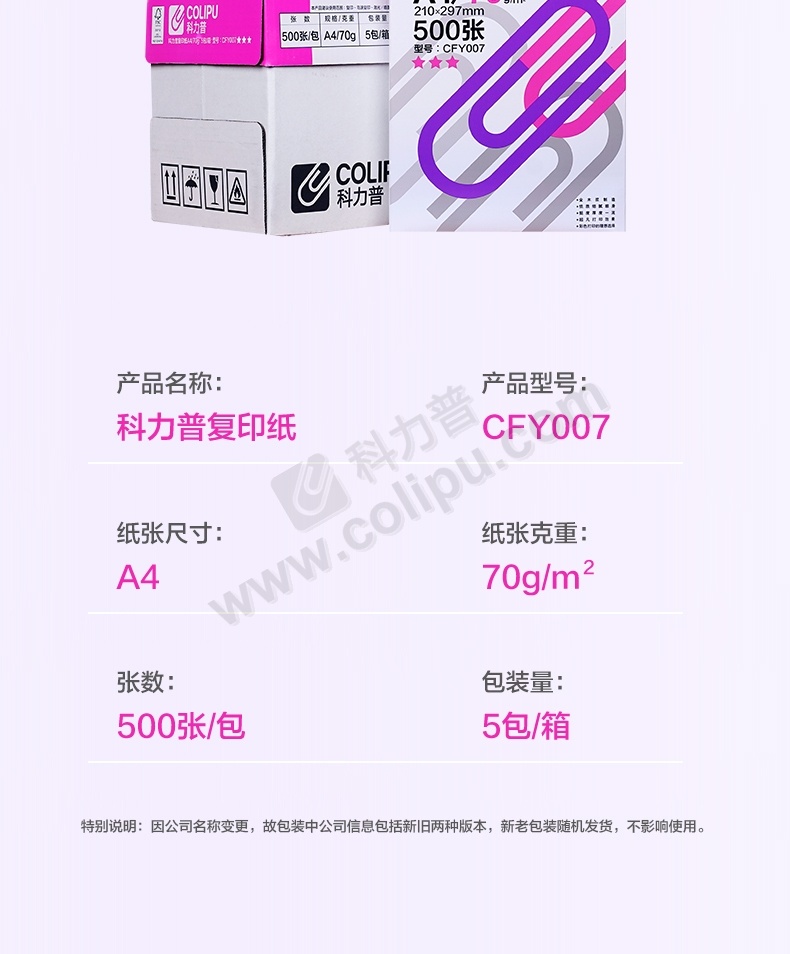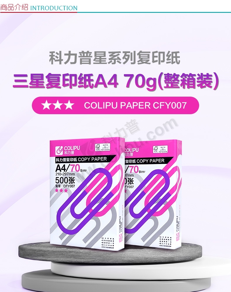 科力普 COLIPU 复印纸 3星 CFY007 A4 70g 500张/包 5包/箱 (大包装)FSC认证