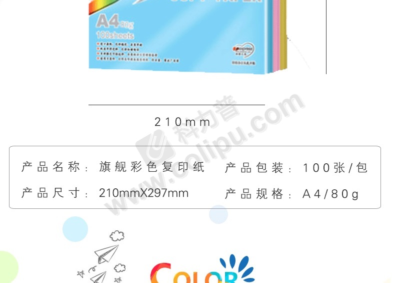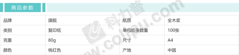 旗舰 FLAGSHIP 彩色复印纸 A4 80g (桃红色) 100张/包