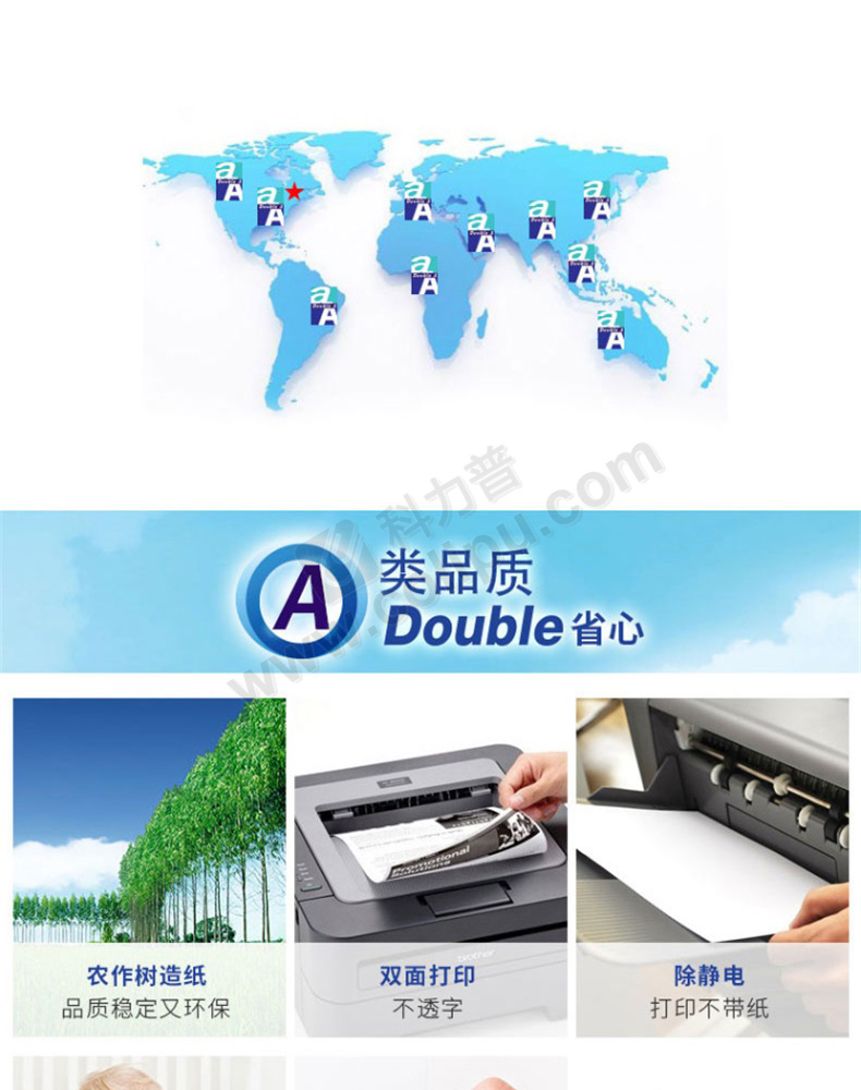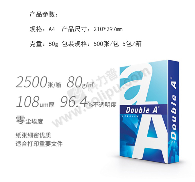 达伯埃 Double A 复印纸 A4 80g/m2 5包/箱 (大包装)