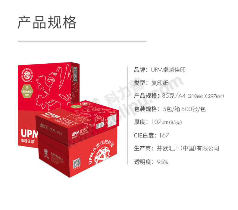 卓越佳印 UPM Jetset Presentation 复印纸 A4 85g 500张/包 5包/箱 整箱订购
