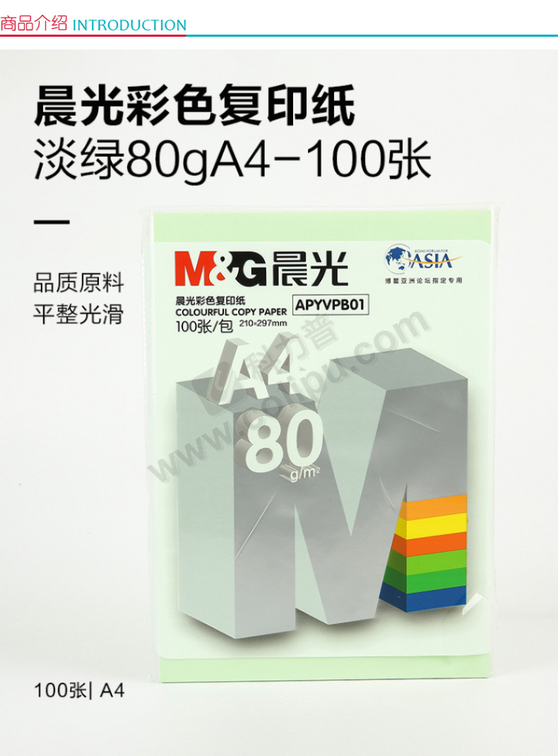 晨光 M&G 彩色复印纸 APYVPB0174 A4 80g (淡绿色) 100张/包