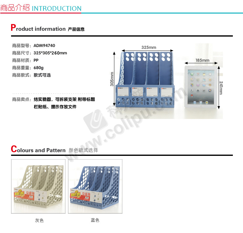 得力 四联文件筐 蓝色、灰色 颜色请备注