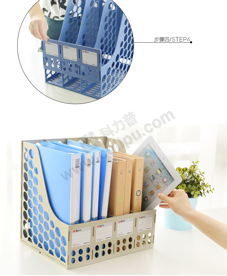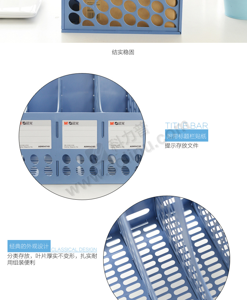 晨光 ADM94740 蓝色四联办公文件筐 单个装