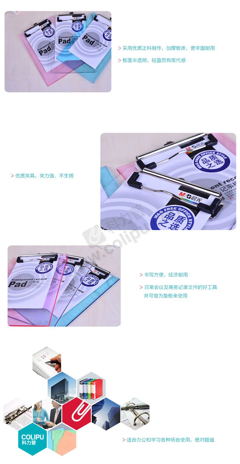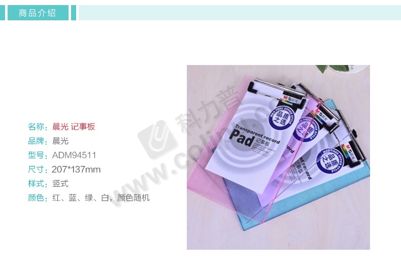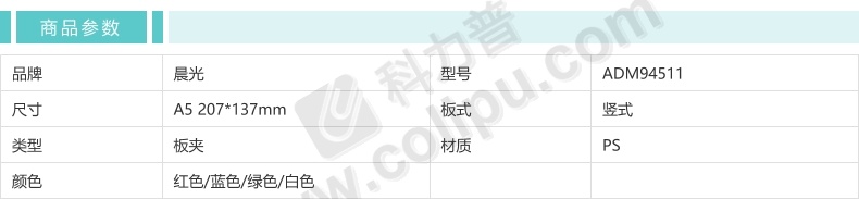 晨光 M&G 塑料板夹 ADM94511 A5 (红色、蓝色、绿色、白色) (颜色随机)