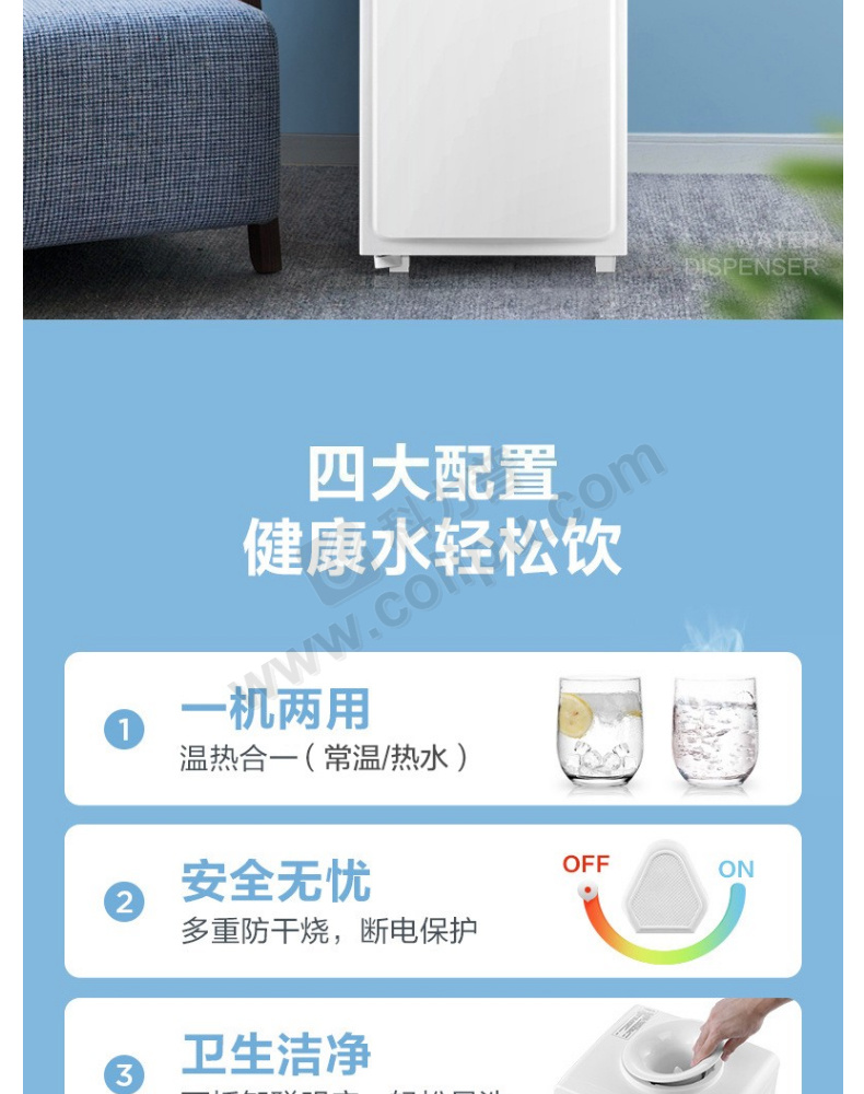 美的 饮水机 MYD718S-X 立式家用办公冷热型多重防干烧大储物柜饮水器