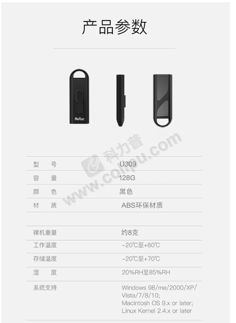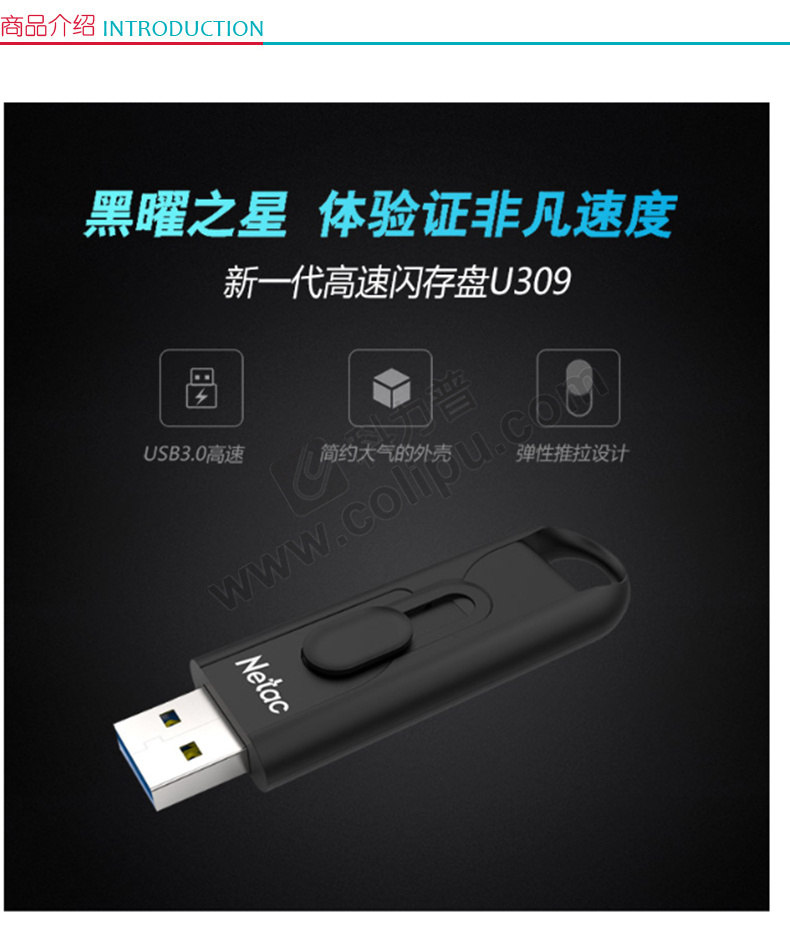 朗科 闪存盘 U309 128G USB3.0 (黑色)
