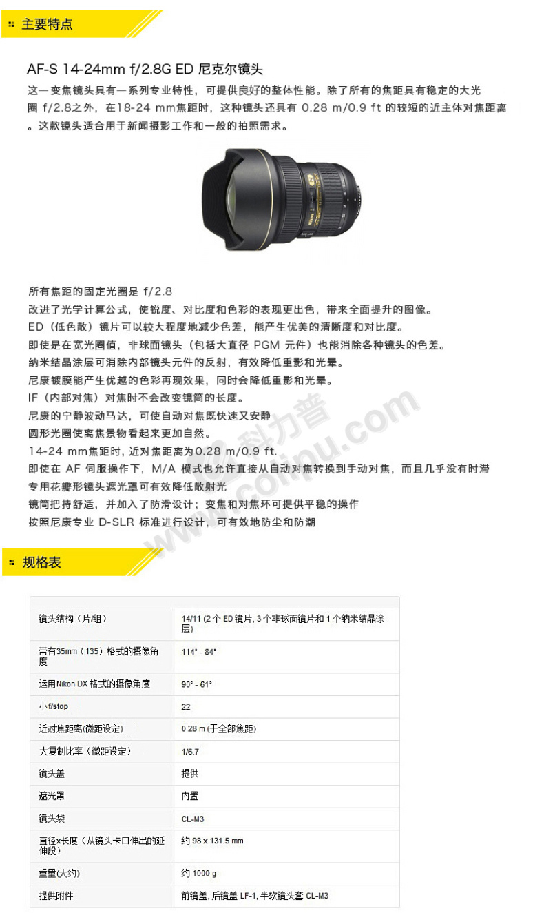 型号:AF-S 尼克尔 14-24mm f/2.8G ED