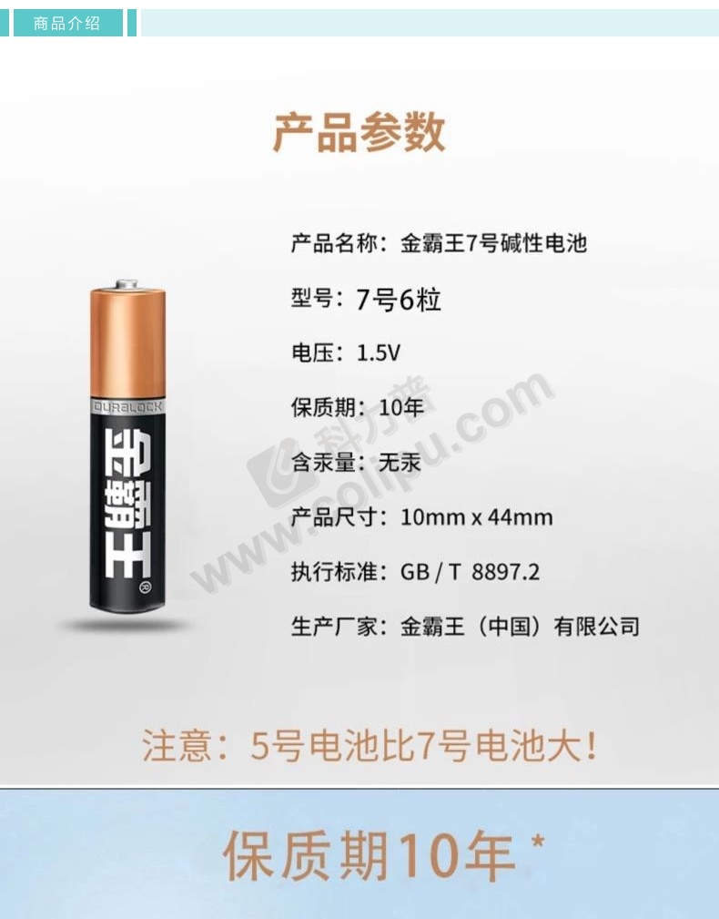 金霸王 7号碱性电池 MN2400B6 1.5V 6节/卡 8卡/盒 12盒/箱