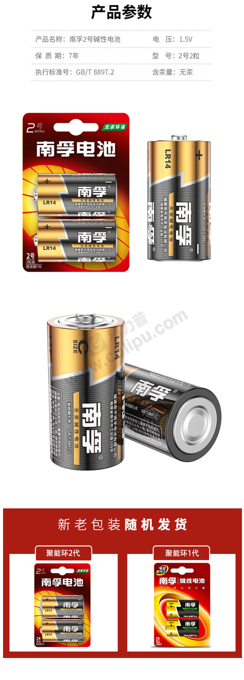南孚 碱性电池 LR20-2B 1号 2节/卡