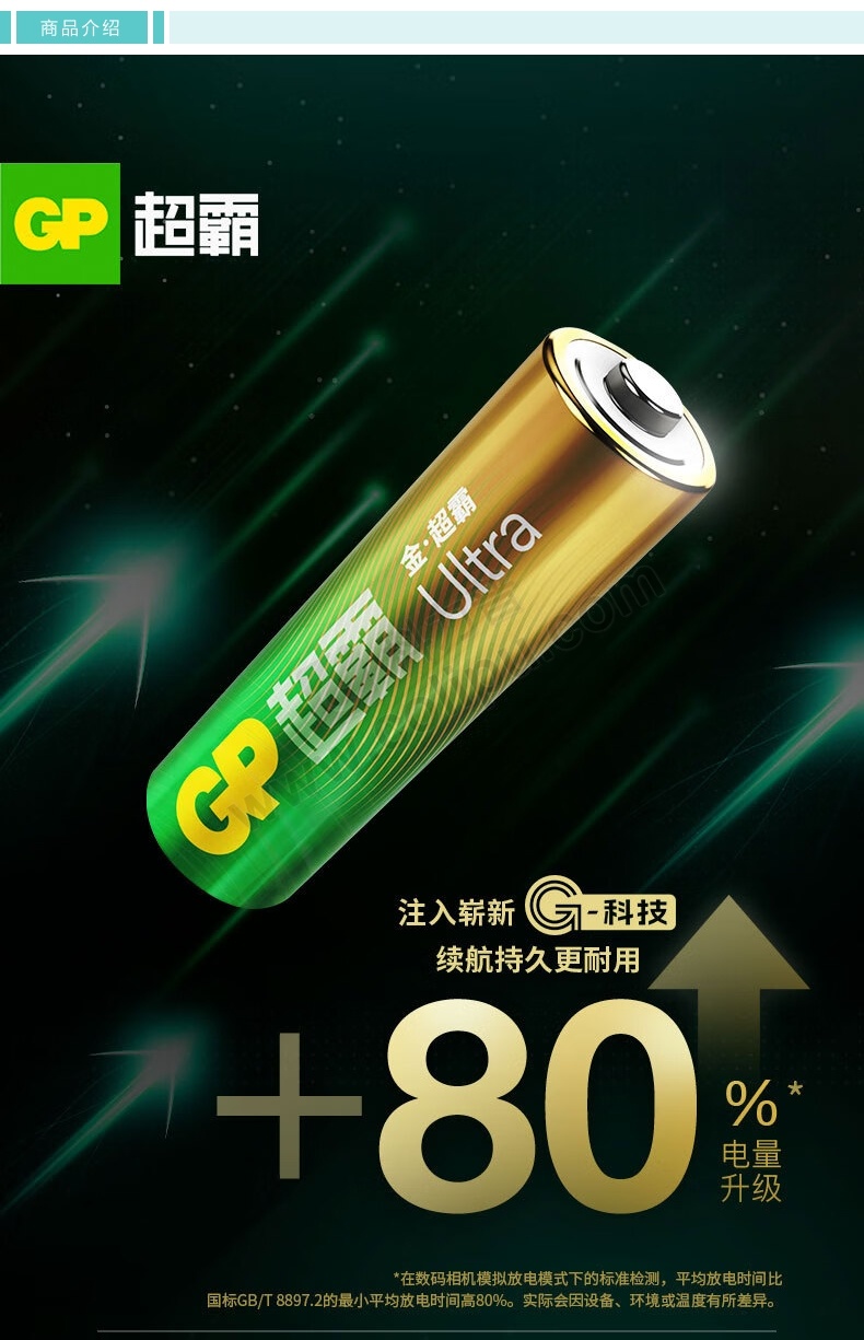 超霸 GP 5号碱性电池 LR6 1.5V 4节/卡 12卡/盒 12盒/箱 新老包装随机发货