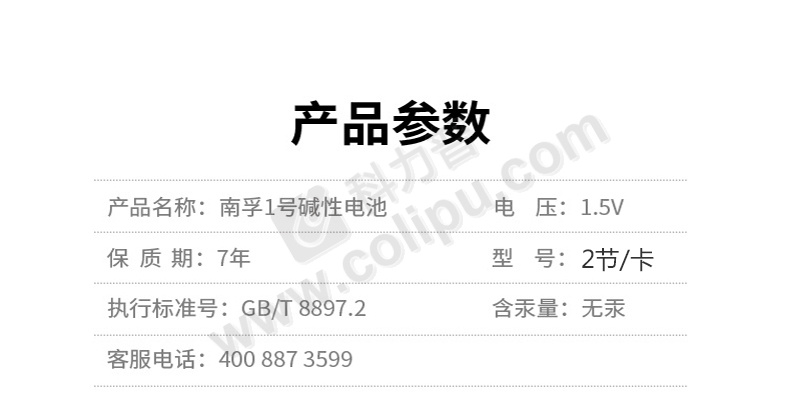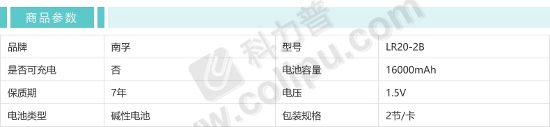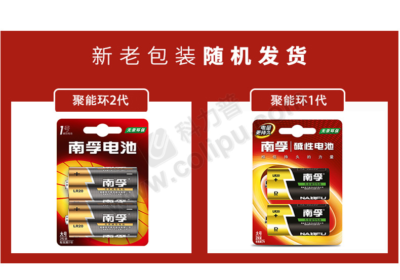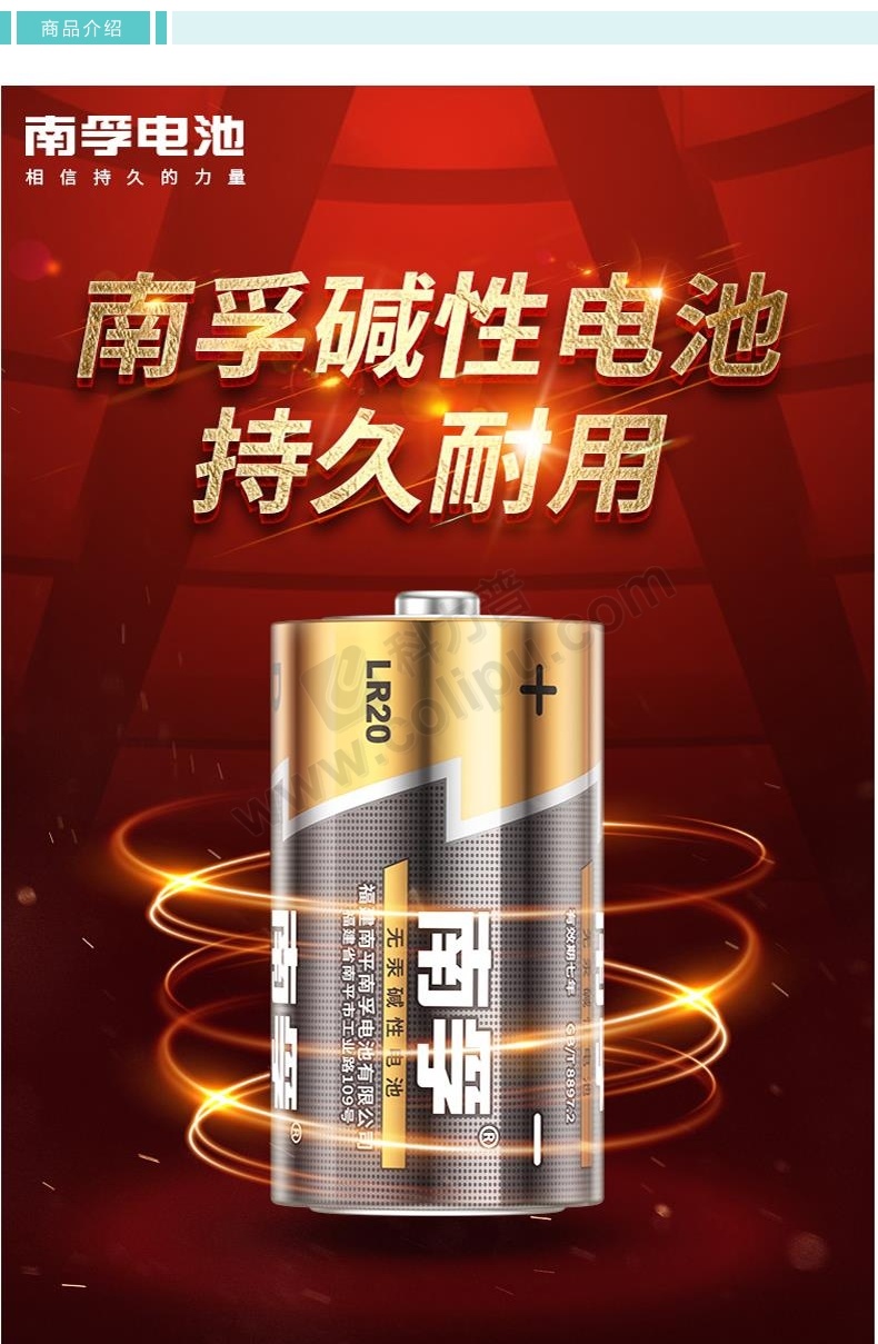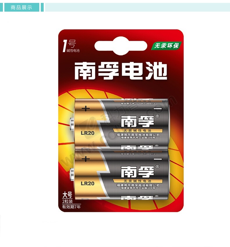 南孚 1号 碱性电池 LR20-2B 1.5V 2节/卡 6卡/盒 60卡/箱 新老包装随机发货