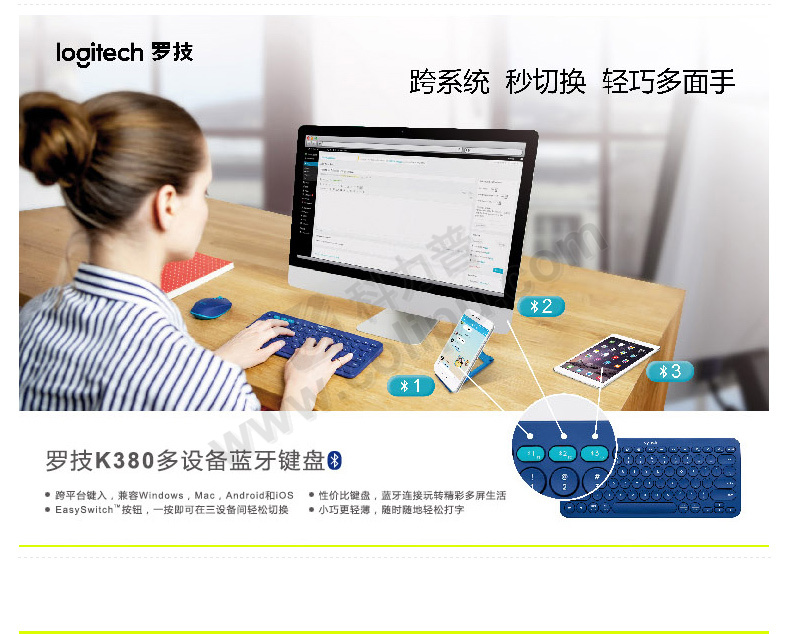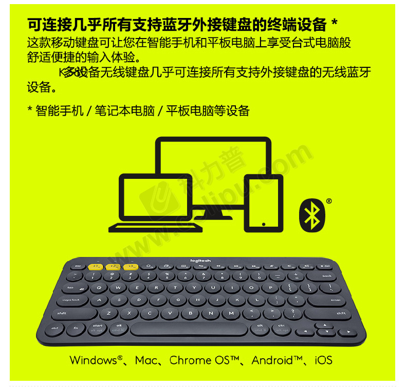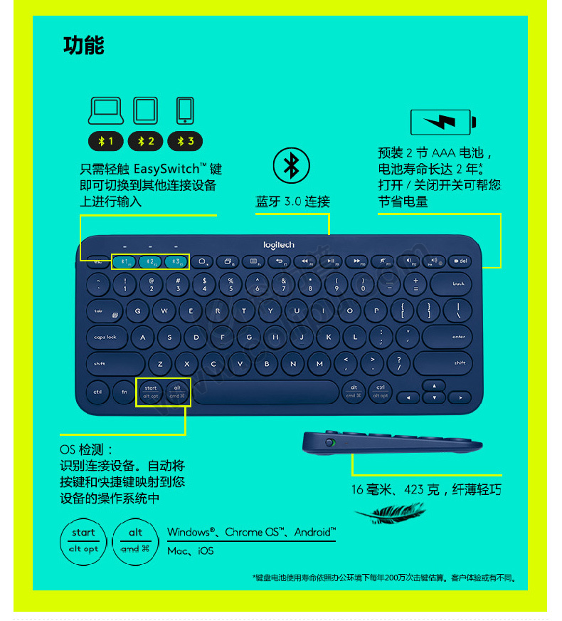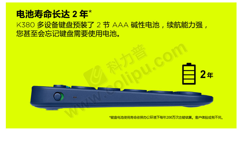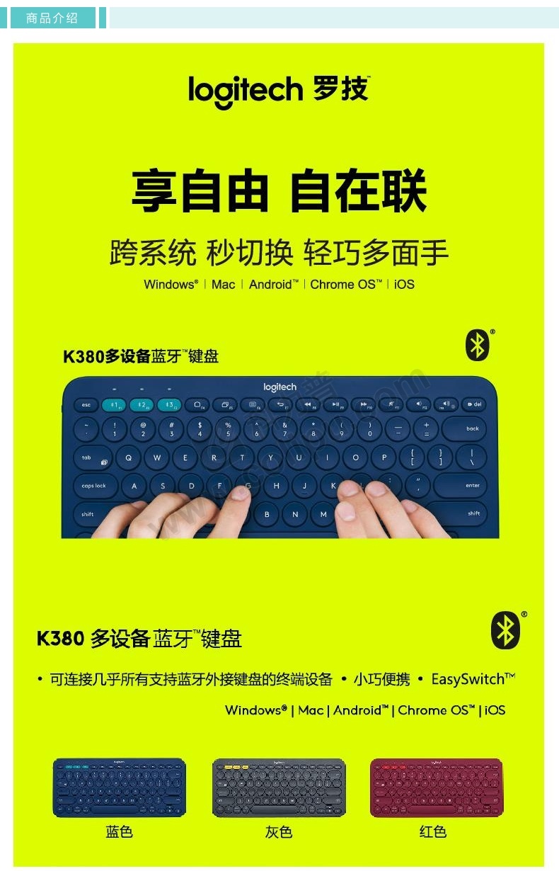 罗技/LOGITECH 蓝牙键盘 K380 USB接口 79键小键盘 蓝色颜色:黑色、规格:K380