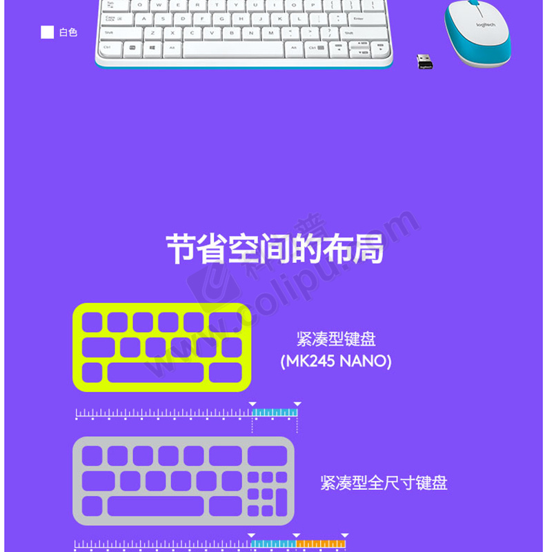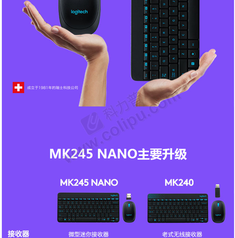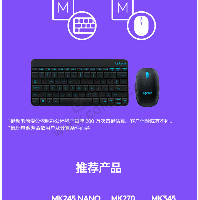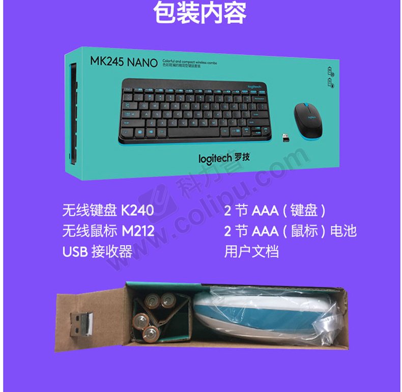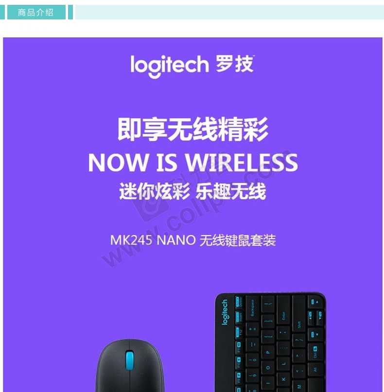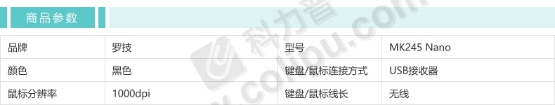 罗技 Logitech 无线键鼠套装 MK245 Nano 带2.4G接收器-USB (黑色)