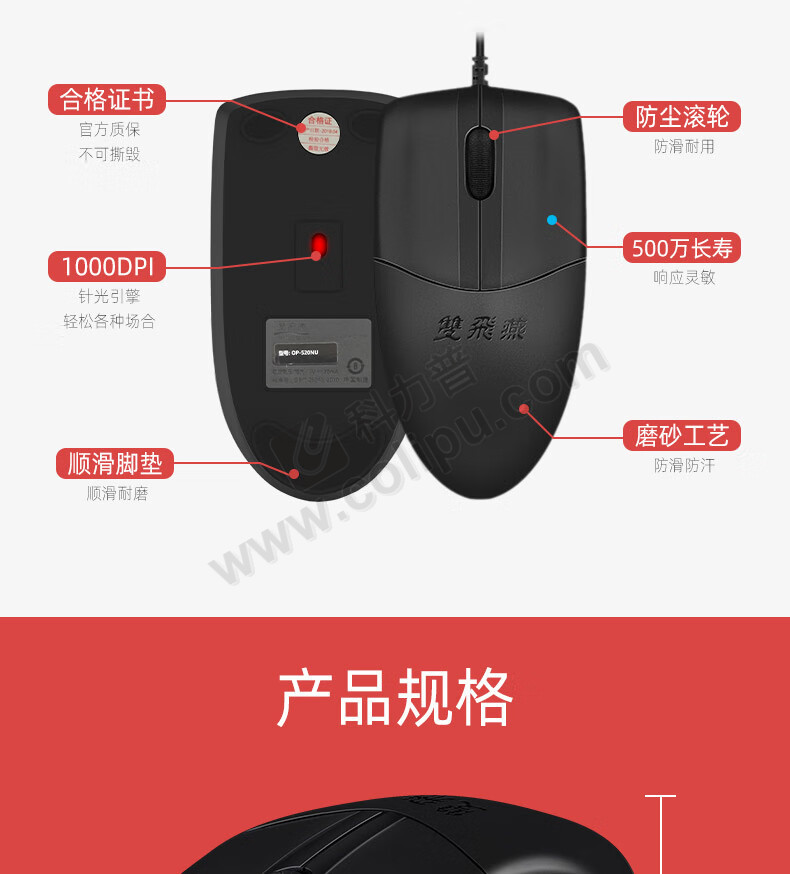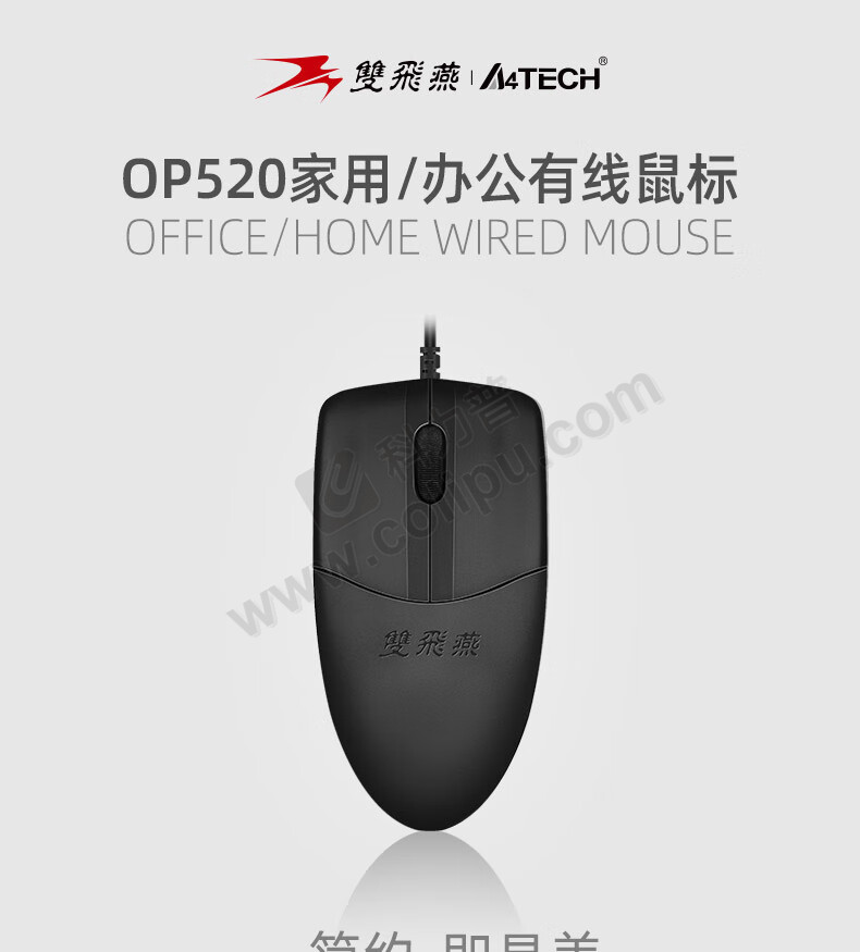 双飞燕 A4TECH 有线鼠标 OP-520NP PS2 (黑色)