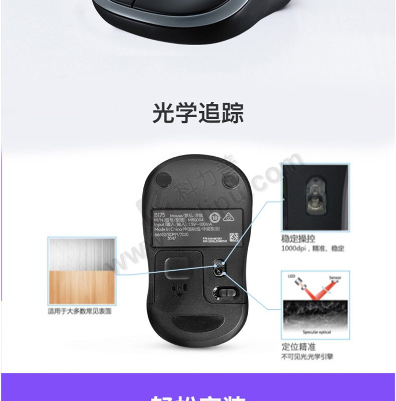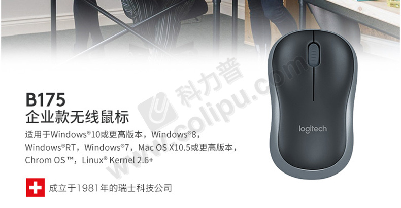 罗技 Logitech 无线鼠标 B175 (M185/M186同款造型)带2.4G接收器-USB (黑色) 新老包装随机发货