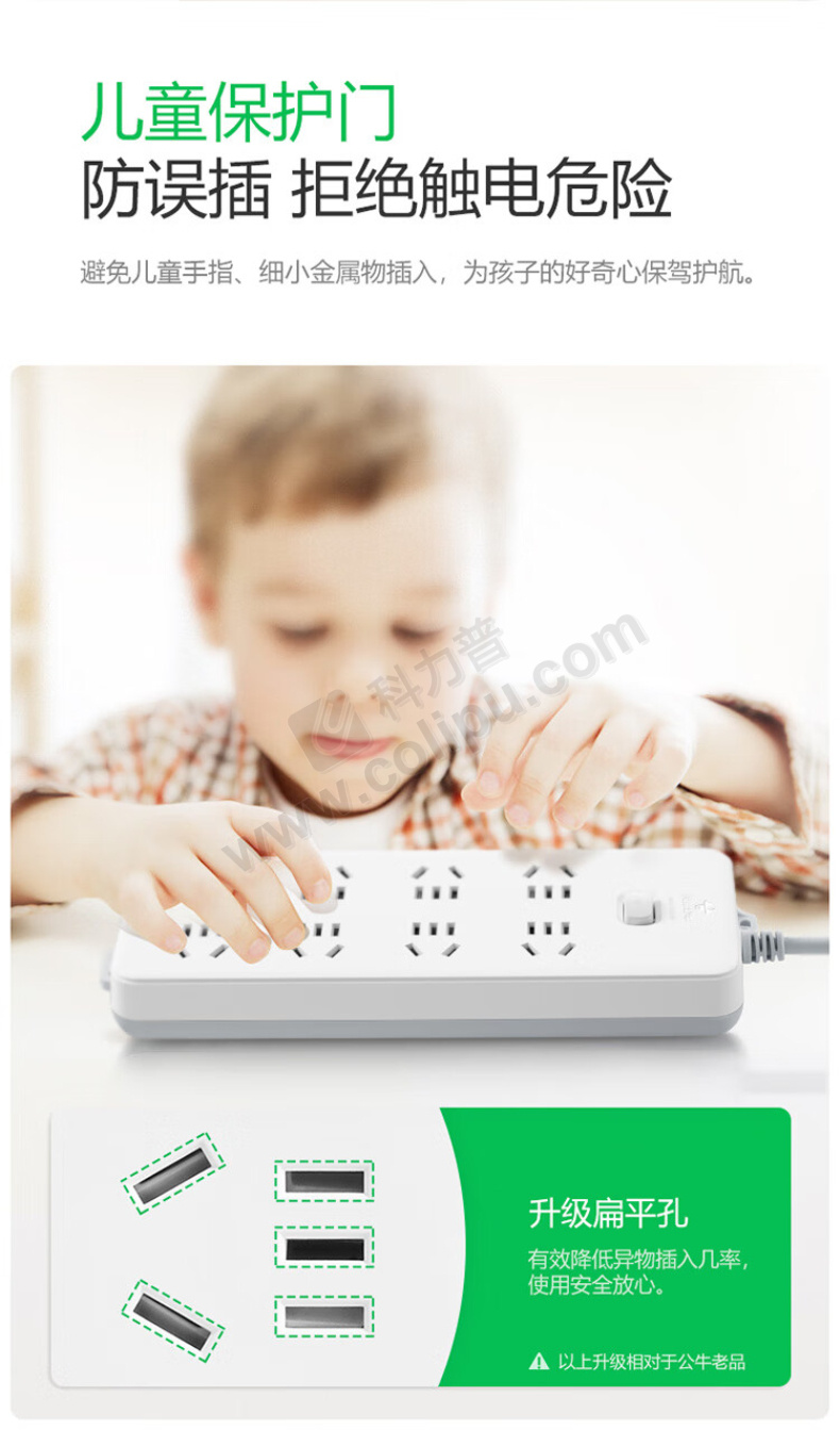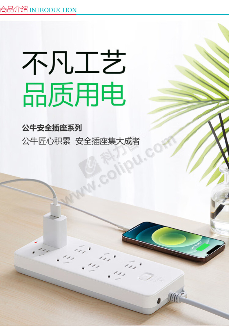 公牛桌洞插座接线板插排插线板插板智能1.8米双USB口