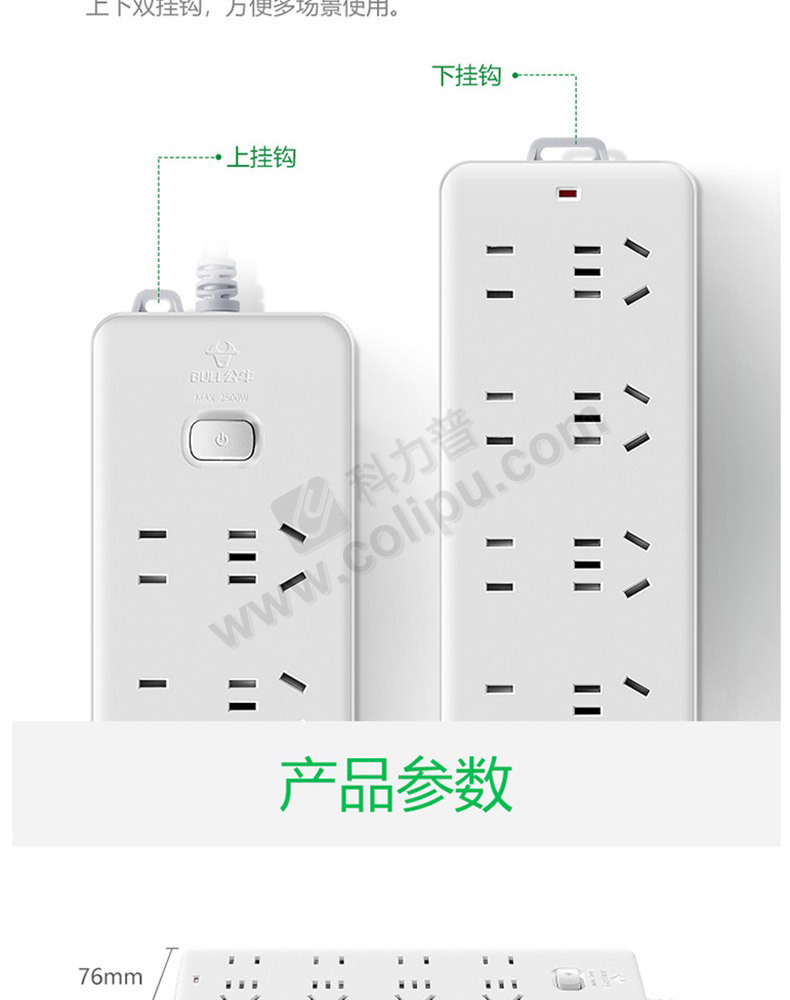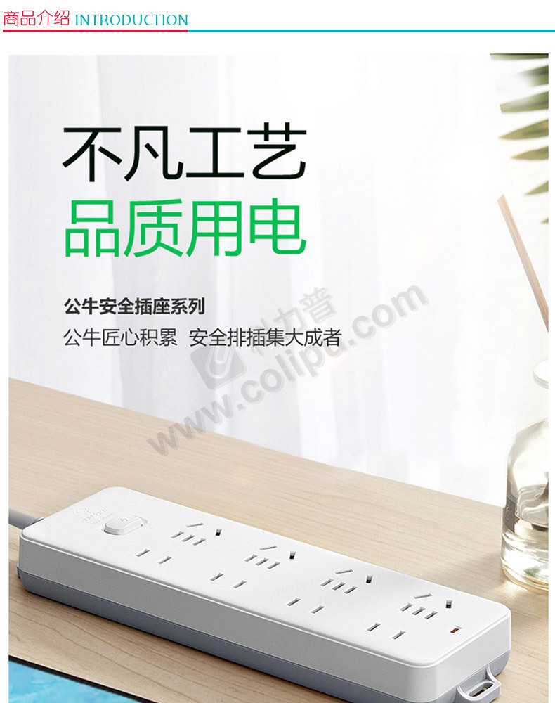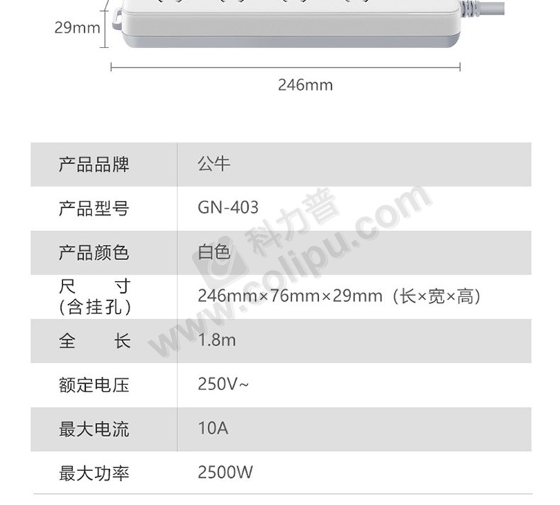 公牛 BULL 插线板 GN-403 总控8位(4位五孔+4位两孔) 1.8米 10005448