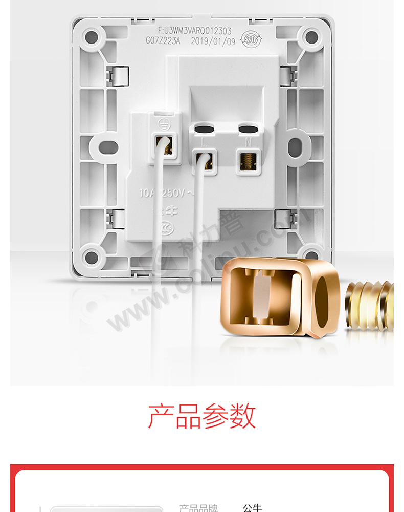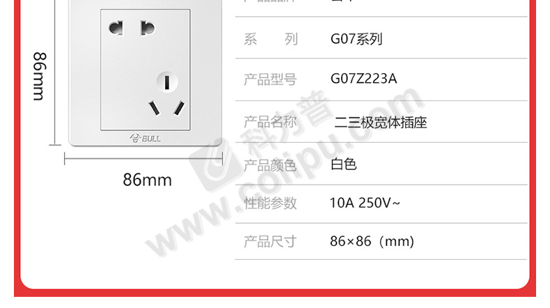 公牛 BULL 插座面板 G07Z223A 斜五孔 86型 12100999
